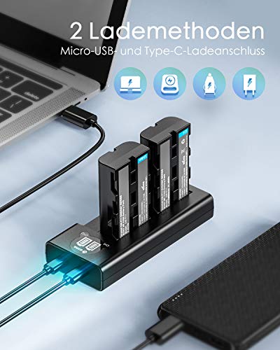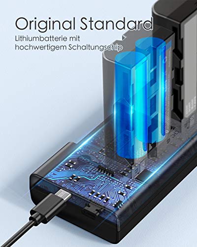 Upgrade Version Kamera Akku als Ersatz für den Sony Camcorder: 2900mAh*2 Stück, bis zu 2700 Fotos schießen und 3 Stunden Video aufnehmen. In 2,5 Std können beide Akku vollgeladen werden und unterstützten USB und Typ C Lade Anschluss. Ideal als Ersatz- oder Zweitakku.