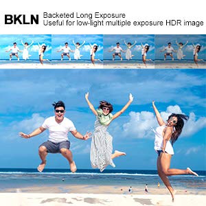 Unterstützt die BKLN-Funktion: Die Bracketted Long Exposure-Funktion ermöglicht die Aufnahme einer Gruppe von Fotos mit automatisch wechselnden Belichtungszeiten, nützlich für HDR-Bilder bei schlechten Lichtverhältnissen