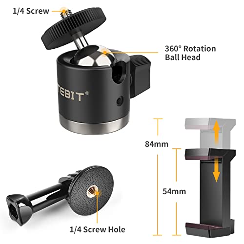 Specification: UTEBIT Kamera-Magnethalter mit 360-Grad-drehbarem Kugelkopf, Supermagnetischem 66-mm-Magnetfuß mit Smartphone-Halter, Aluminiumlegierung & Gummibeschichtung Stativhalter, vertikal belastbar 20 kg