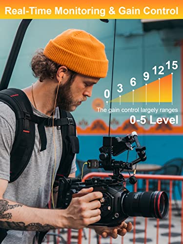 【Klang in Broadcast-Qualität】 Der Empfänger verfügt über eine Verstärkungsregelung für 0-5-Pegel, einfache und effektive Optimierung der Signalpegel. Die optionale 150-Hz-Low-Cut-Funktion kann bestimmte niederfrequente Geräusche wie Wind-, Klimaanlagen- und Verkehrsgeräusche herausfiltern. Liefert erstklassiges, klares Audio für die Postproduktion.