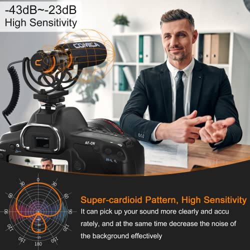 Comica CVM-VM20 Kamera Mikrofon, Externes Shotgun Mikrofon Super-Kardioid Kondensor Video Mikrofon mit OLED Power Display & Low Cut Filter Modi für Canon Nikon Sony DSLR-Kamera Smartphone