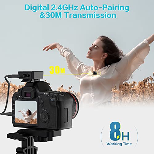Specification: EVARY Lavalier Mikrofon Wireless, Ansteckmikrofon Kabellos System bis zu 30m für DSLR Kamera Camcorder Smartphone Gopro PC Laptop für Interview Online Meeting und Kurs Streaming Videoaufnahme