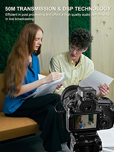 【50 m Übertragungen und breite Kompatibilität】In die DSP-Technologie integriert, das G1(A2) überträgt stabile und störungsfreie Signale mit einer Reichweite von bis zu 70 m und einer geringen Latenz von 12,5 ms. Der Empfänger verfügt über einen 3,5-mm-TRS-Audioausgang, der das 3,5-mm-TRRS / TRS-Kabel akzeptiert und kompatibel mit Smartphone, Tablet, Computer, DSLR, Camcorder usw. Ein Lightning-Adapter ist mitgeliefert, damit Sie iPhone zusammen benutzen können, ohne separat zu kaufen.