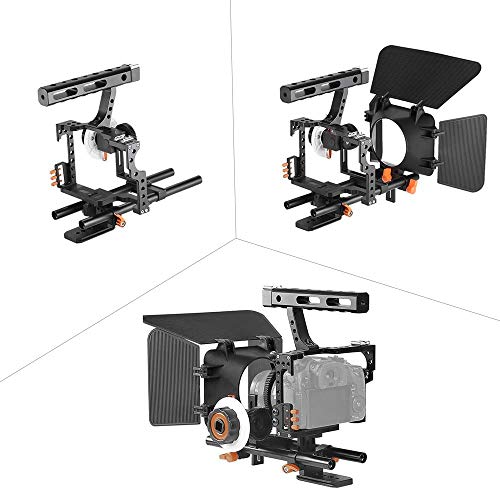Specification: Andoer C500 Camera Rig Aluminiumlegierung Kit mit Kamera Cage, Matte Box+ folgt, Follow Focus+ Handgriff + 15mm Rod, Kamerarecorder Videokäfig Rig Installationssatz Film für Panasonic GH4