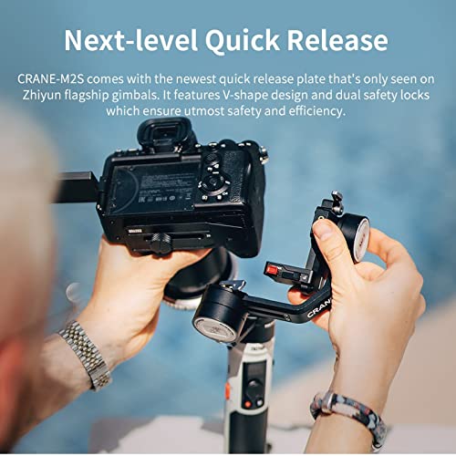Zhiyun Crane M2S Combo 3-Achsen-Gimbal-Stabilisator für leichte spiegellose Kamera, Action-Kamera, Smartphone für Sony A6300, A6500, A6100, RX100M, GX85, Hero 10/9/8/7