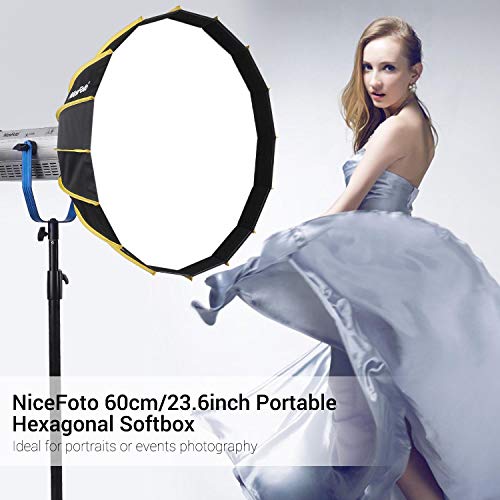 NiceFoto 60cm Tragbare, schnelle Installation Sechseckige Softbox mit weichem Diffusorstoff und Gitterstreifen-Regenschirm Design Silberreflektor-Softbox für Blitzlichtzubehör von Speedlite Studio