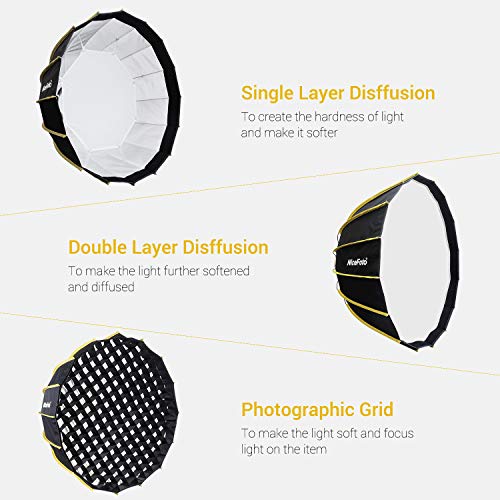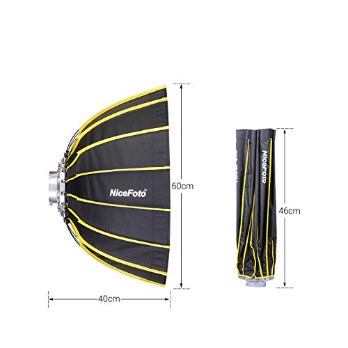 Specification: NiceFoto 60cm Tragbare, schnelle Installation Sechseckige Softbox mit weichem Diffusorstoff und Gitterstreifen-Regenschirm Design Silberreflektor-Softbox für Blitzlichtzubehör von Speedlite Studio